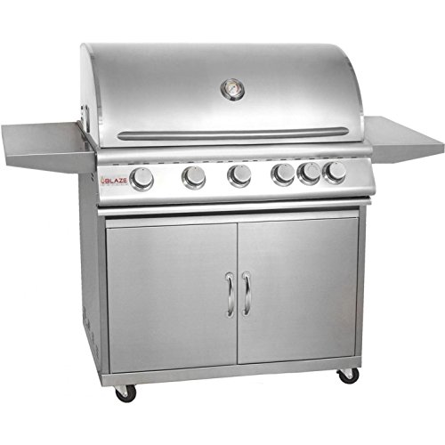 Blaze Blz-5-Lp 40 Inch 5-Burner Built-In Propane Gas Grill With Rear Infrared Burner And Grill Cart