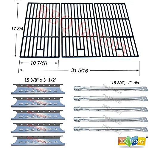 bbq factory® Replacement Master Forge 3218LT ,3218LTN, L3218, 5 Burner Gas BBQ Grill Stainless Steel Burners, Stainless Steel Heat Plates, Porcelain Cast Iron Cooking Grates